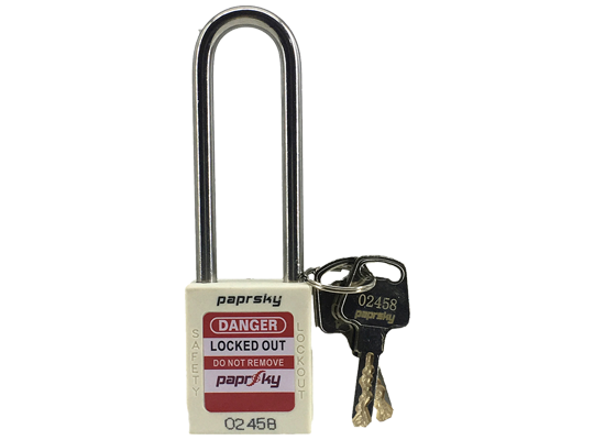 Lockout Padlock White PS-LOTO-PPNR-76 long plastic shackle