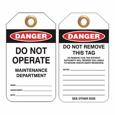 Lockout Tag Danger Do Not Operate Maintenance Department