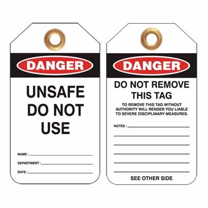 Lockout Tag Danger Unsafe Do Not Use