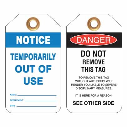 Lockout Tag Notice Temporarily Out Of Use